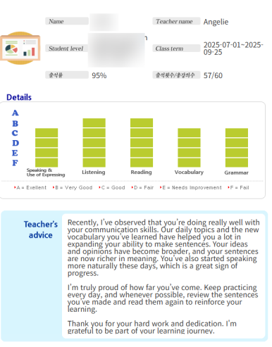 선생님이 특히 10월부터는 늘었다고 칭찬을 많이 해주세요.