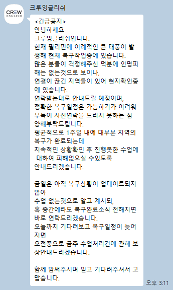 이번에 필리핀 강진으로 불가피한 수업진행이 안되었지만
